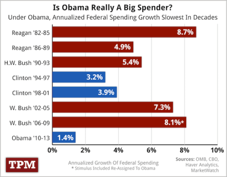 TPM published an article titled, “An Obama Spending Spree? Hardly” by Sahil Kapur