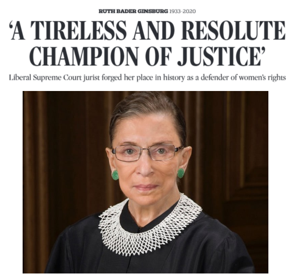 Chief Justice John Roberts mourned Ginsburg’s passing. “Our Nation has lost a jurist of historic stature. We at the Supreme Court have lost a cherished colleague. Today we mourn, but with confidence that future generations will remember Ruth Bader Ginsburg as we knew her — a tireless and resolute champion of justice,” he said in a statement.