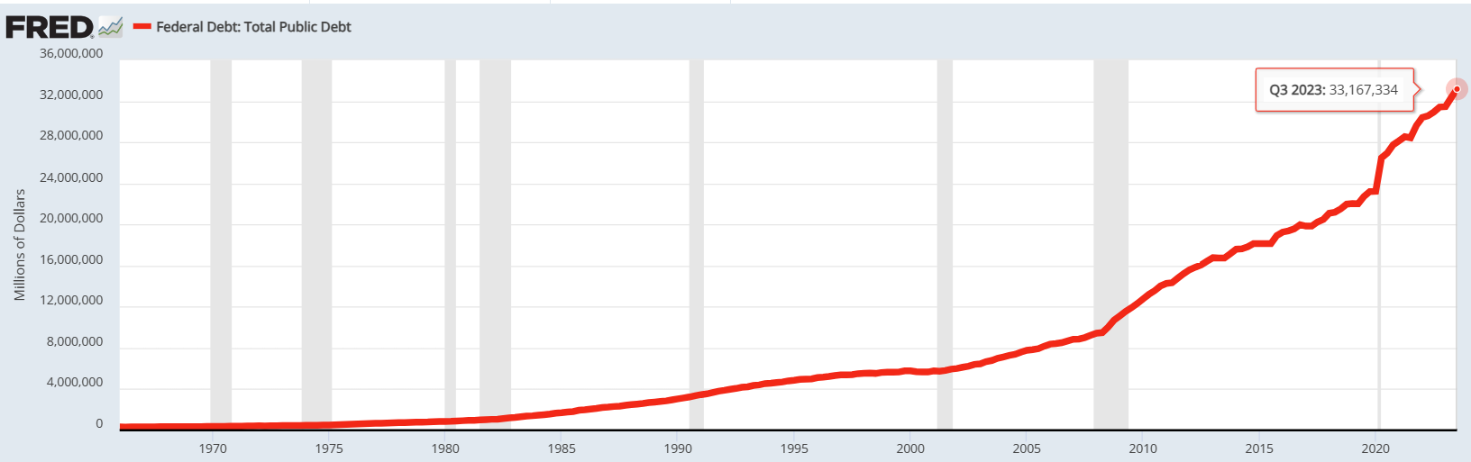 The federal government has spent over $33 TRILLION more than it has collected in taxes.