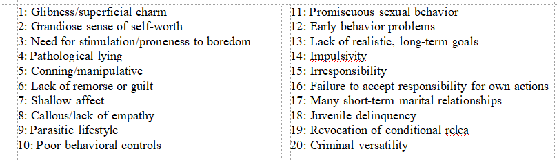Almost a year later, on May 12, 2016, we posted “Will our next President be a psychopath?” which introduced you to the Hare Psychopathy Check List-Revised (PCL-R).