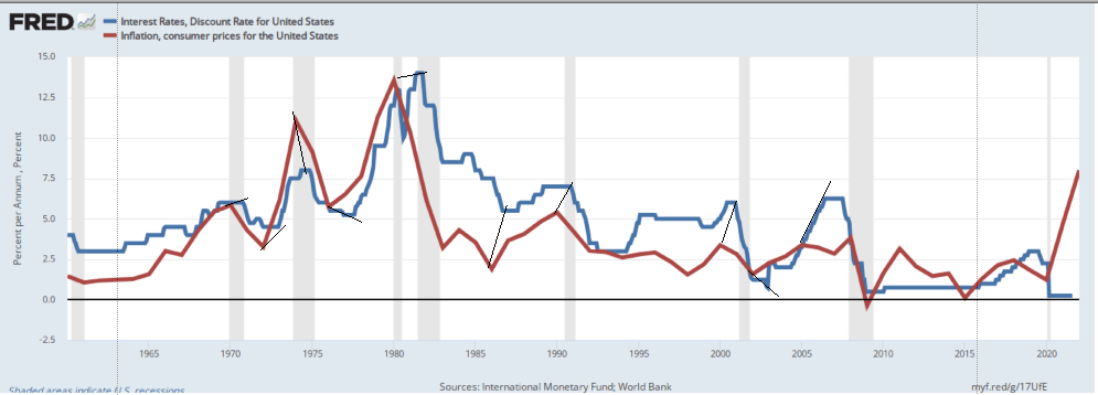 While the Fed claims that rising interest rates cause inflation to fall, rising inflation leads to higher interest rates.